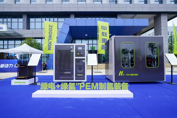 Zoomlion also introduced a full-range hydrogen solution covering production, refueling, and usage. The system includes compact electrolyzers, its first high-pressure refueling station, and a 300kW fuel cell power unit, offering new low-carbon options for transportation and energy sectors.