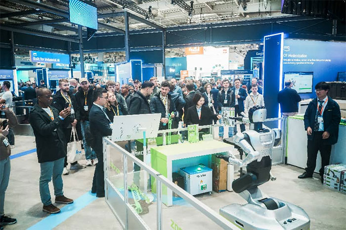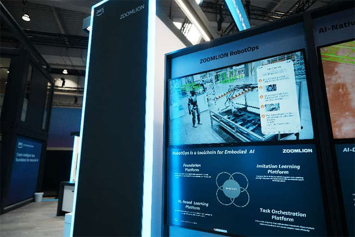 At the joint booth of Amazon Web Services (AWS) and Zoomlion, the company showcased an integrated solution combining artificial intelligence, humanoid robots, industrial software, and industrial internet platforms in real industrial scenarios. ZValley’s industrial intelligence agent dynamically coordinated humanoid robots and logistics mobile robots to collaboratively complete industrial logistics sorting tasks. Meanwhile, Zoomlion's new Z01 humanoid robot, powered by the Robot Claw industrial driver, performed complex tasks such as factory inspections and material inventory counting. The audience responded with prolonged applause and admiration, praising Zoomlion’s cutting-edge technological prowess.