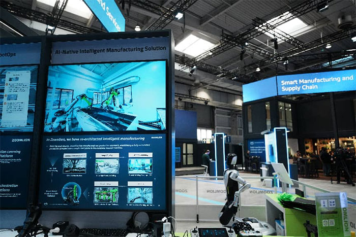 On the morning of April 20 local time, HANNOVER MESSE 2026 grandly opened at the Hannover Exhibition Center in Germany. At this world-leading event in the global industrial technology sector, Zoomlion’s ZValley Technology Co. Ltd, made a stunning global debut of its self-developed embodied intelligence operating system, Robot Ops, a new humanoid robot, and an AI-native intelligent manufacturing total solution. On the first day of the exhibition, Zoomlion's booth attracted a continuous stream of global partners and visitors, who came to experience the demonstrations and discuss collaboration, creating a lively and enthusiastic atmosphere.